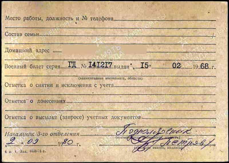 Удостоверение участника войны выдано 02.09.1980.