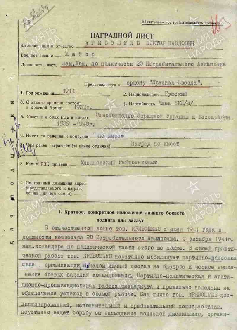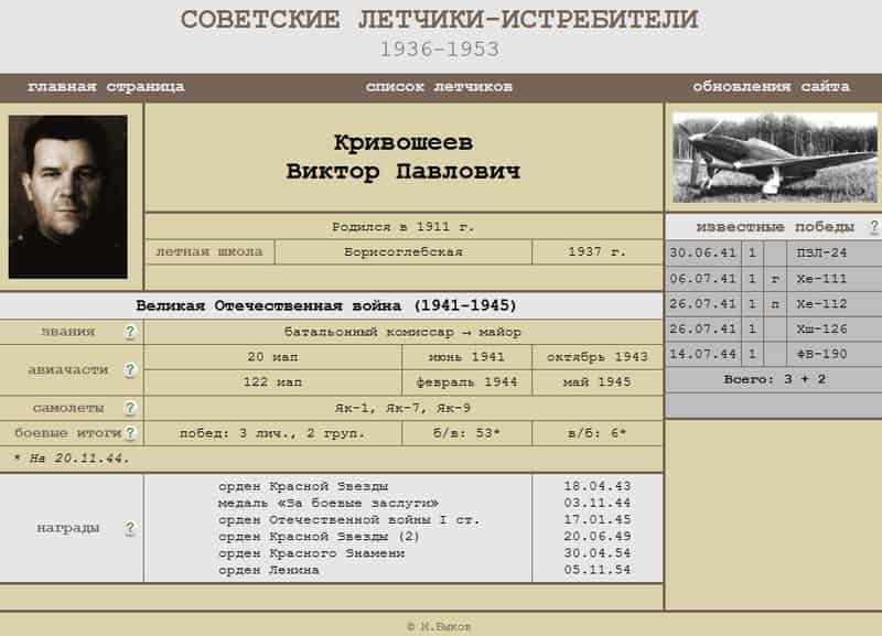 По переписи 20.07.1942 Кривошеев Виктор Павлович – военный комиссар 20 иап.