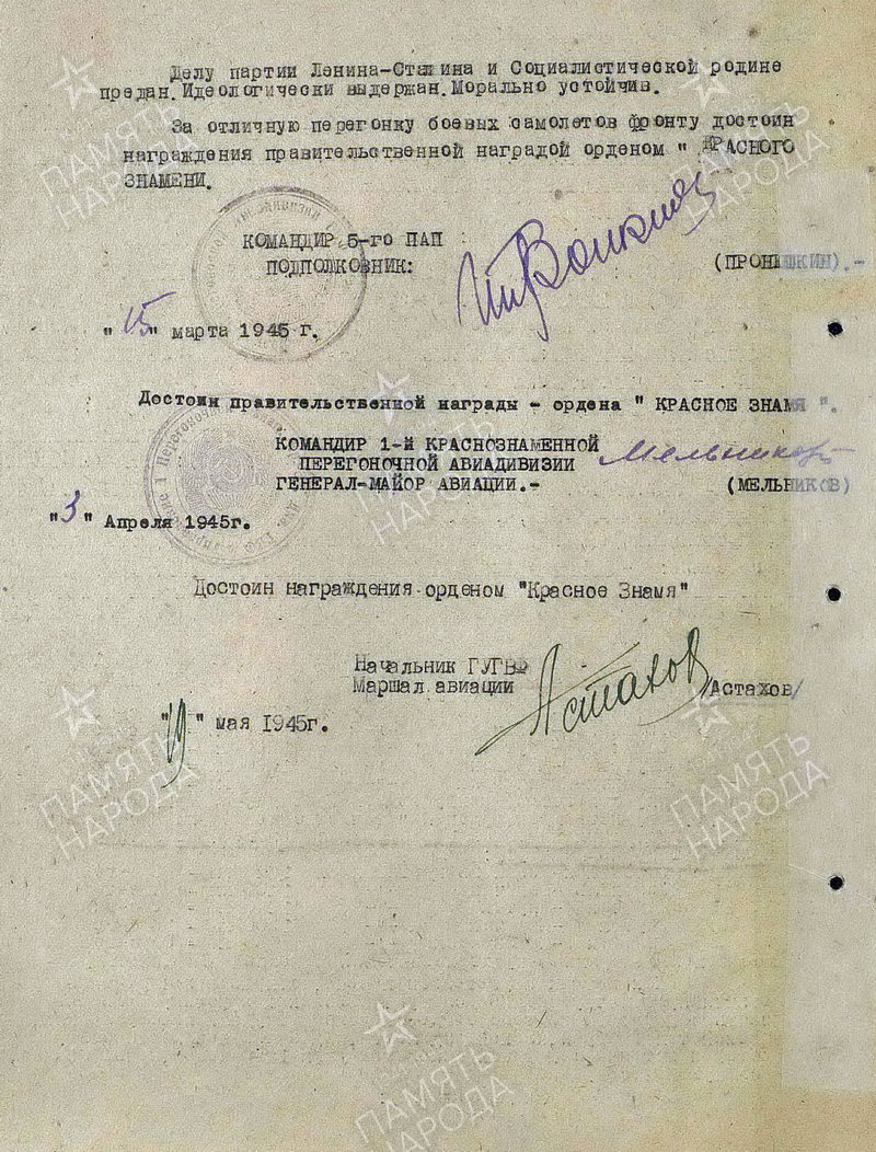 С 22.11.1942 – командир эскадрильи 2-го перегоночного авиационного полка.
