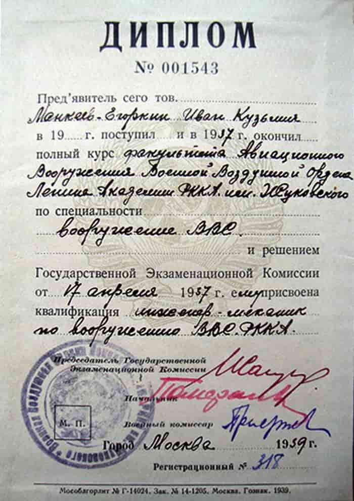 03.06.1953 инженер-полковник Манкеев-Егоркин Иван Кузьмич уволен в запас.