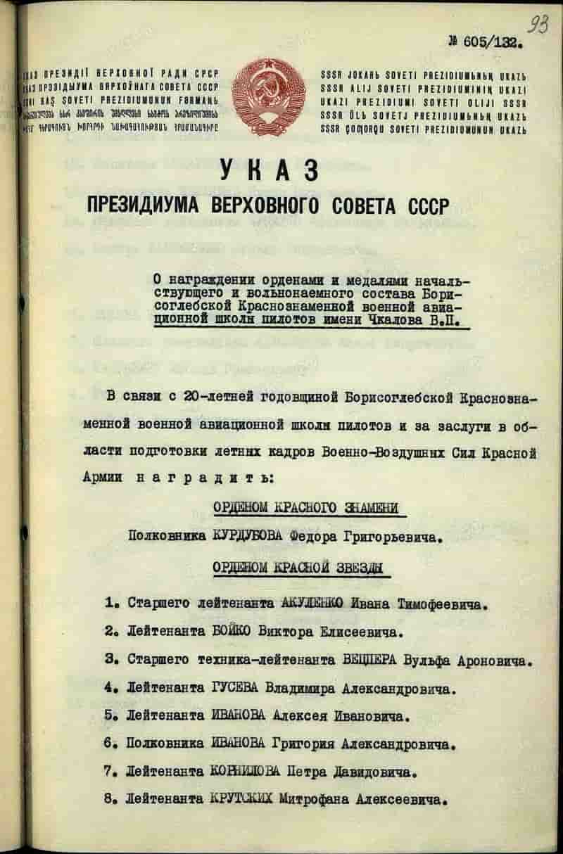 08.08.1940 окончил Борисоглебскую Краснознамённую военную авиационную школу им. В.П. Чкалова по первому разряду с присвоением воинского звания младший лейтенант и оставлен в ней инструктором-лётчиком (приказ НКО СССР № 03691).
