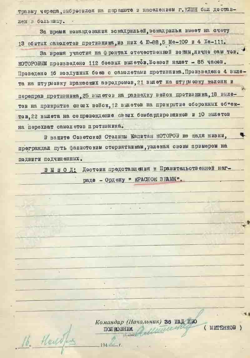 16.11.1942 помощник начальника оперативно-разведывательного отделения управления 36 иад ПВО капитан Которов С.И. представлен к награде и 14.02.1943 награждён орденом Красного Знамени.