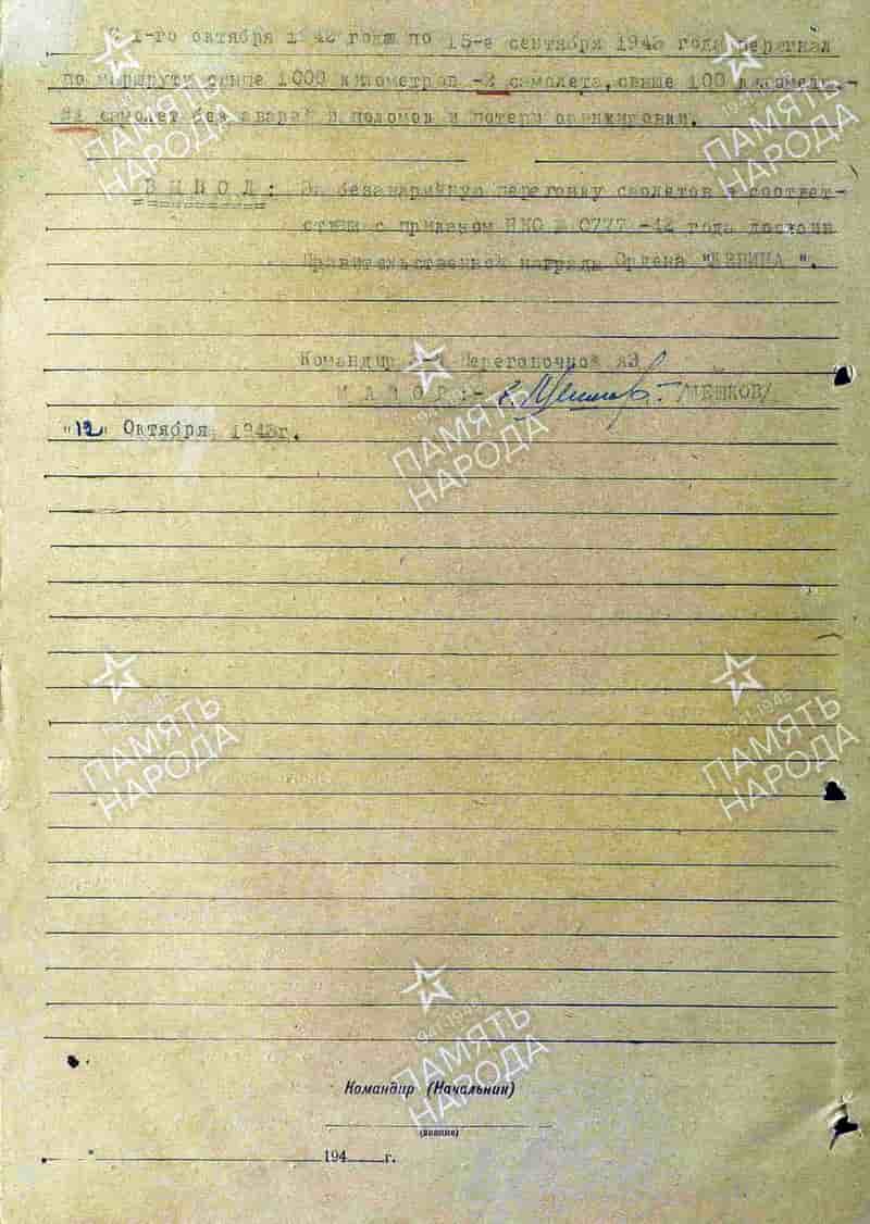 12.10.1943 командир звена 3-й перегоночной эскадрильи Кретов А.Г. представлен к награждению орденом Ленина. 28.02.1944 награждён орденом Красной Звезды.