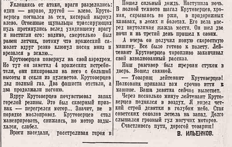 15.02.1942 командир эскадрильи 41 иап 2-й резервной авиационной группы 59-й армии Волховского фронта старший лейтенант Крутоверцев В.И. представлен к награде и 20.04.1942 награждён орденом Ленина.