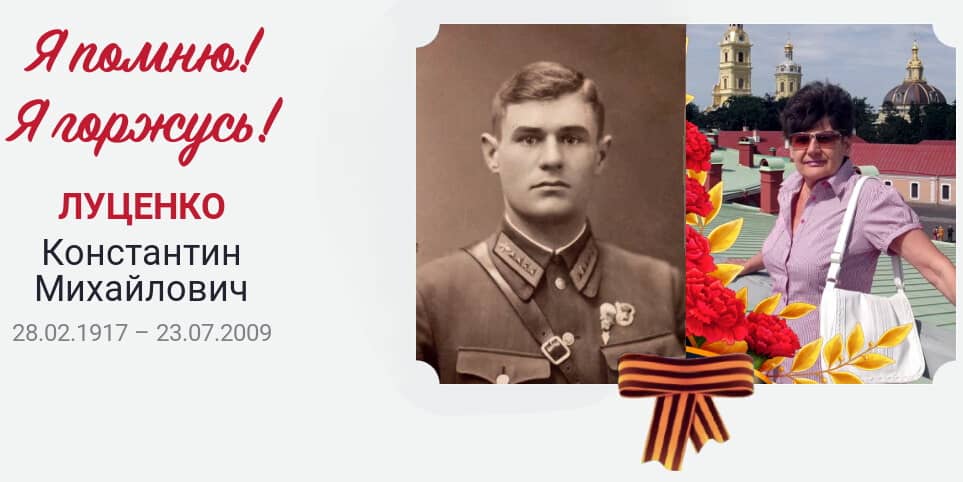 «Мой дедушка – Луценко Константин Михайлович. Военный лётчик. Всю войну вносил свой вклад в победу над фашистами. На линии фронта в летном училище обучал молодых ребят летать. В тяжелых оборонительных боях в период отступления Красной Армии советская авиация несла большие потери. В короткие сроки в полевых условиях приходилось создавать новые аэродромы для подготовки лётчиков, которые сразу после обучения направлялись на фронт. Широко известен подвиг Алексея Петровича Маресьева, легший в основу произведения Бориса Полевого «Повесть о настоящем человеке». Мой дедушка совершил такой же подвиг. Его самолёт был сбит, упал в лесу. Но Константин Луценко остался жив, и в течение нескольких суток, по пояс проваливаясь в снег, выбирался к своим. И ему это удалось, помогло желание победить врага. Благодаря тому, что выжил, он за годы войны сумел обучить ещё немалое число военных лётчиков, которые совершенствовали свое мастерство уже в боях.»