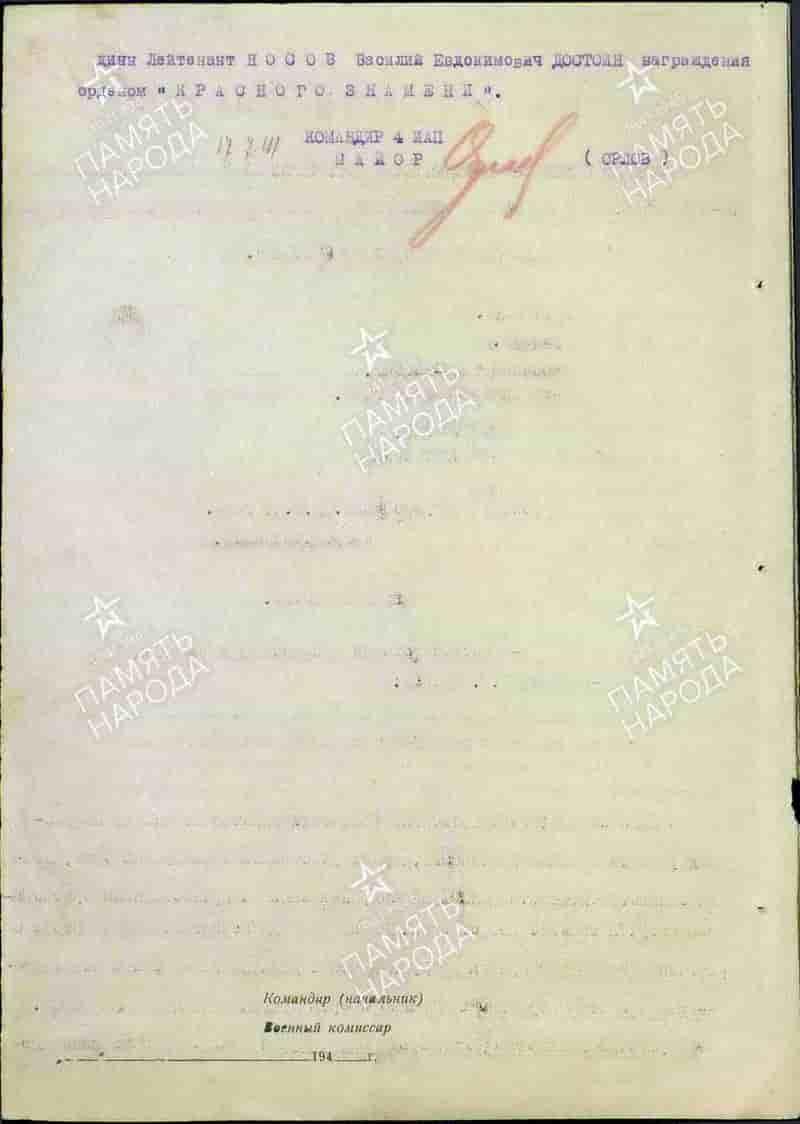10.10.1942 Носову Василию Евдокимовичу присвоено воинское звание лейтенант.