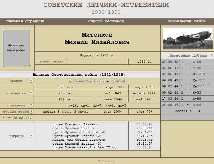 17.03.1944 командир звена 2-й эскадрильи 907 иап он 148 иад ПВО Западного фронта ПВО лейтенант Митенков М.М. представлен к награде и 21.03.1944 награждён орденом Красной Звезды.